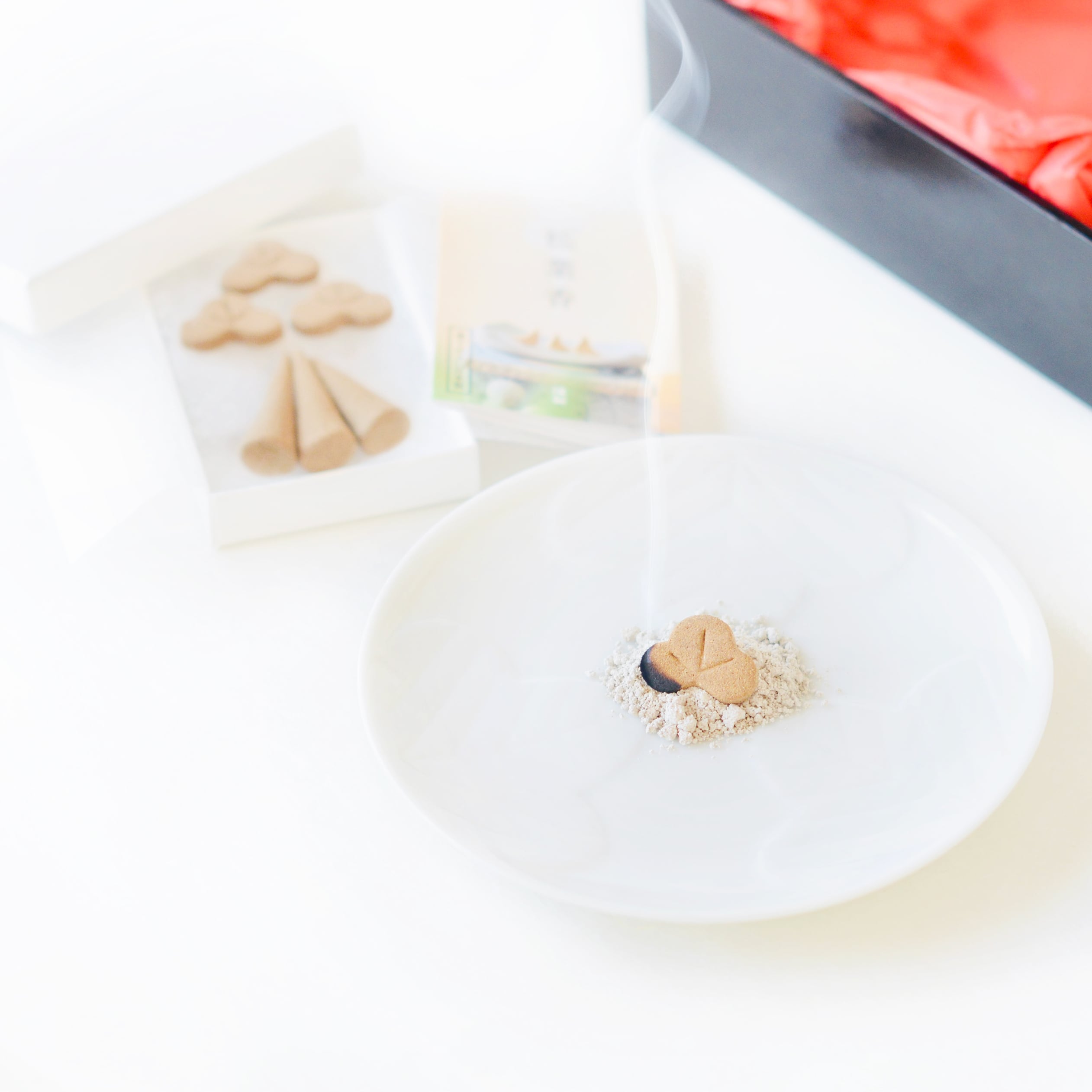 「香炉灰」付き。セットのお皿ですぐに焚けます。